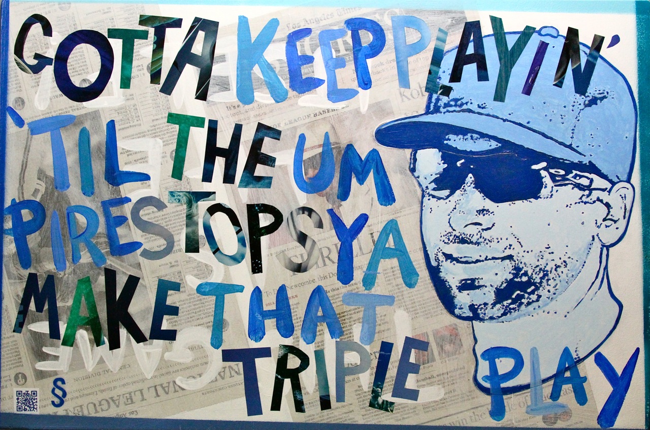 Showers of wins, I mean, and flowers that blossom into a commanding lead. As of this writing, the boys in blue have a 23-11 record. And that’s with Matt Kemp in a slump. I’ve been a little slow in posting my latest paintings, but I’m gonna drop a half-dozen on you right now, just like the team did yesterday on the Rockies in the bottom of the 5th.