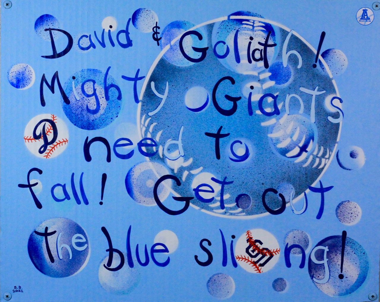 David & Goliath Posted on July 20, 2021 by L.A. Blue Bum David & Goliath!Mighty Giants need to fall!Get out the blue sling! Giants @ DodgersJuly 19-22, 2021
